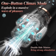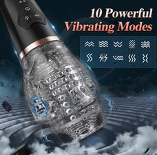 10 POWERFUL VIBRATION MODESWith inner quality dual side motors, the strong electrical vibration makes your part almost insane and the sucking drives you to the absolute climax. The portable and handheld design makes it easy to adjust the modes. Please yourself by very simple operation for double stimulation.DUAL SIDE MOTORSConvenient for use with strong multi-frequency mode. The masturbator cup performs oral sex like it is sucked into a tornado!SUPER-STRETCHY AND SOFT TEXTUREDThe friction drives you crazy with the internal 3D particles and projection. Made of premium material which is suitable for a variety of different widths. It lies very well in the hand and is not too heavy, enjoy it with vibration or use the sleeve individually.5 POWERFUL SUCKING MODESOne button climax mode. Explode in a massive wave of pleasure.EASY TO CLEANCan be flushed out without disassembly. Not waterproof so do not submerge in water.Long handleSplashproofUSB rechargeable – charging cable included1 Year warranty provided by The Male RoseABS and TPE9in. x 2in.